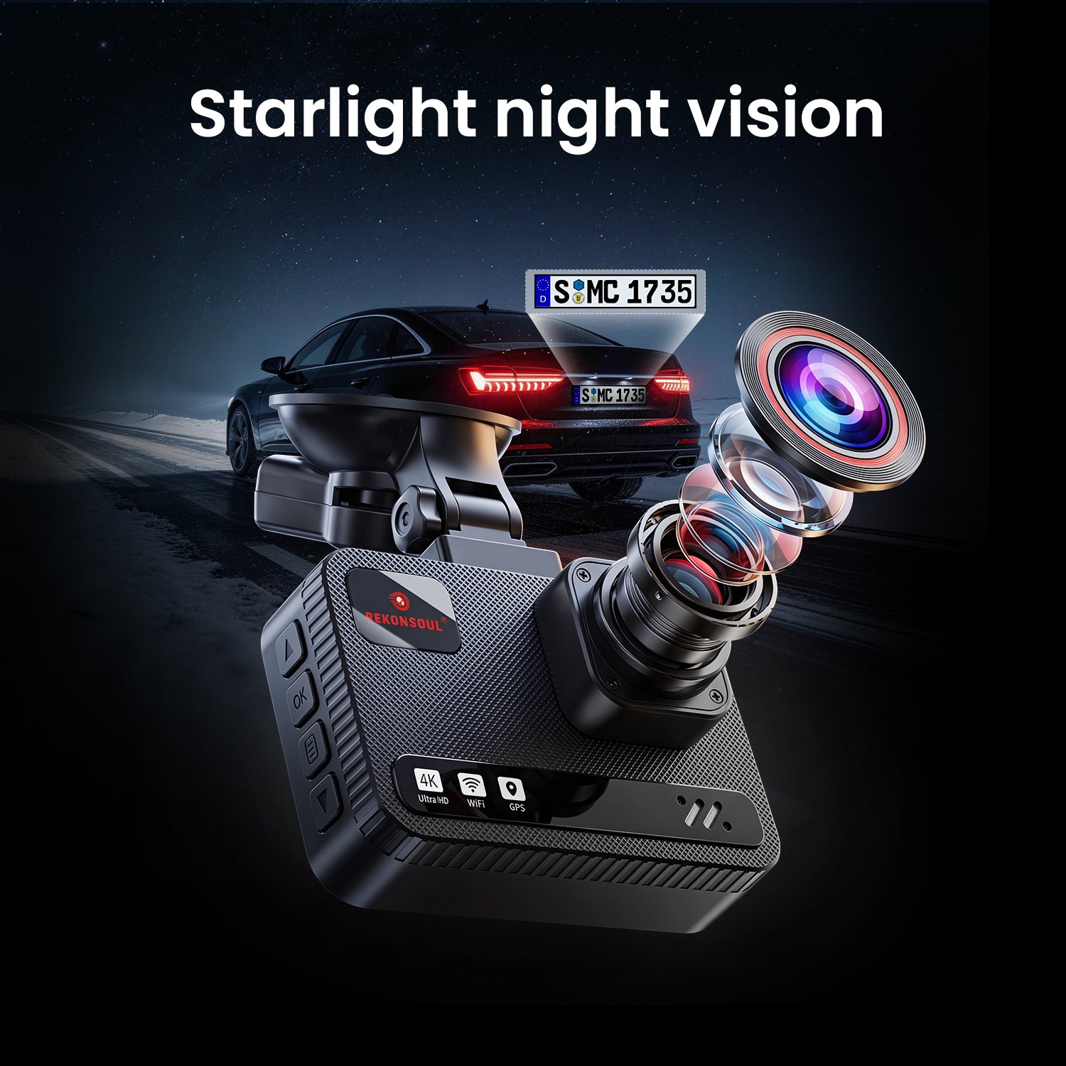 Equipped with Super Starlight Night Vision, WDR, and large apertures (F1.5 front / F1.8 rear), the dash cam captures bright, clear footage with accurate colors even in low-light or nighttime conditions.