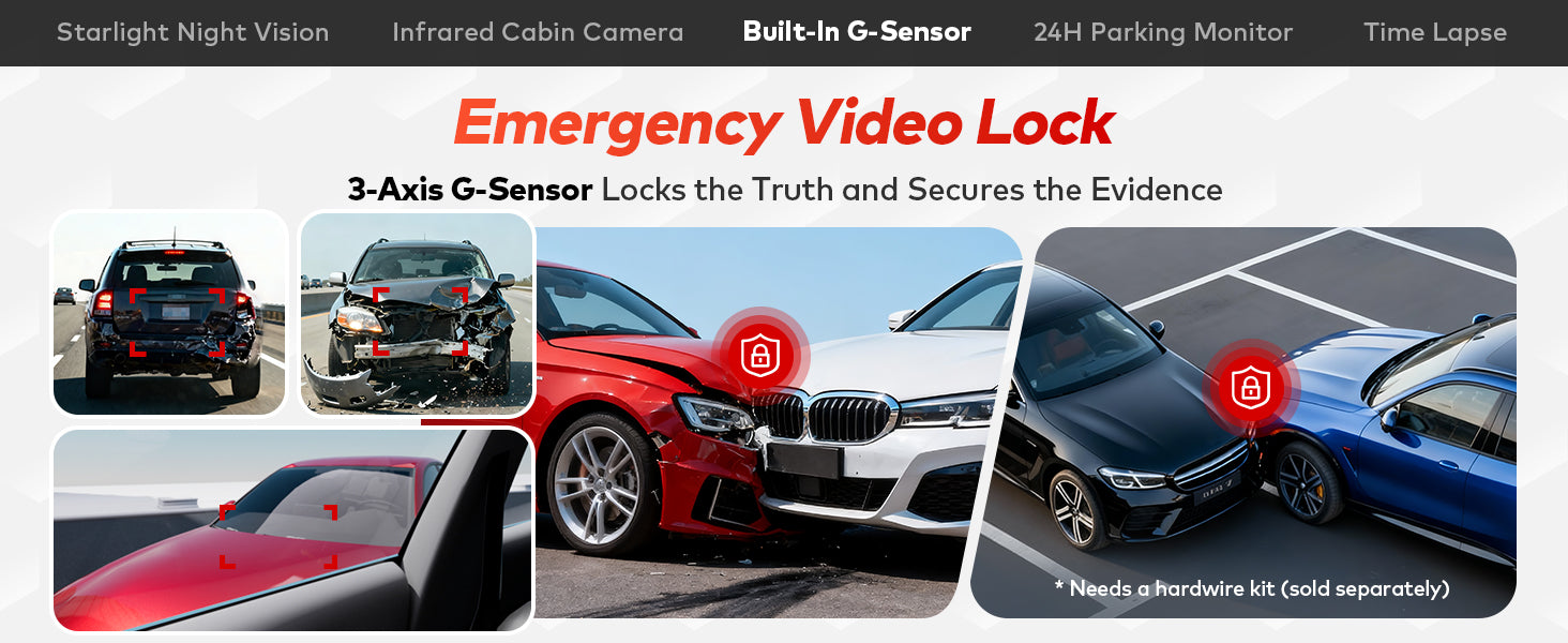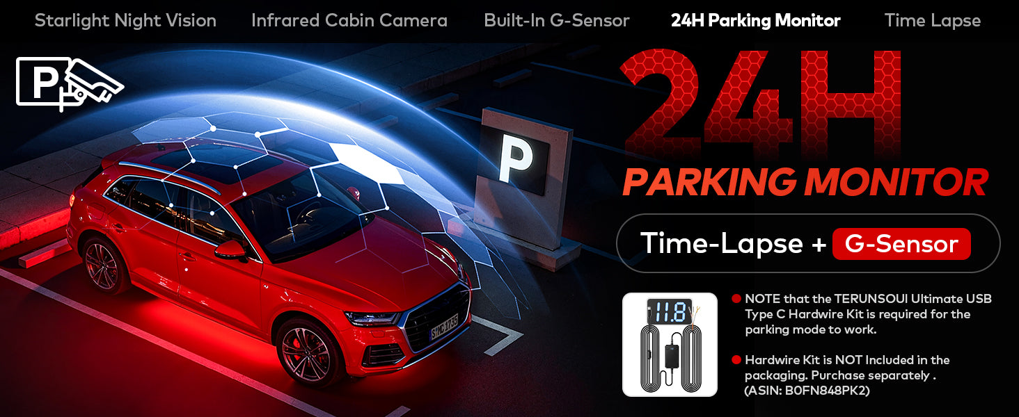 Near-360° Protection with G-Sensor and 24H Parking Mode