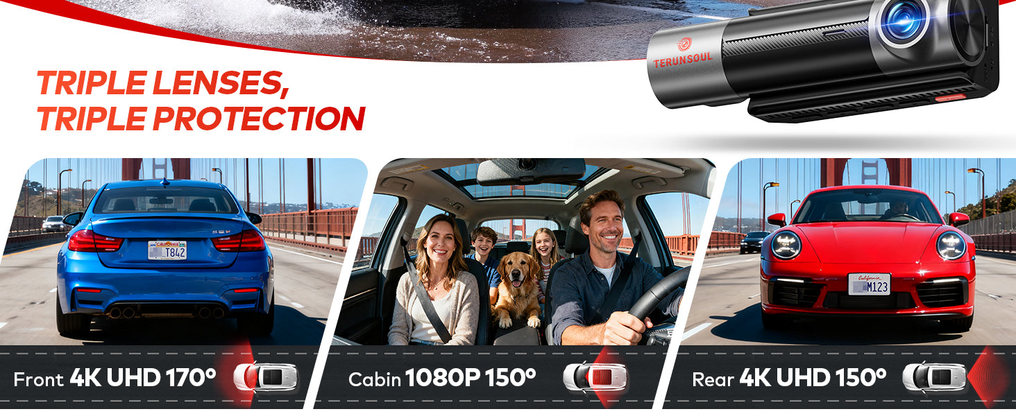 TERUNSOUL D018 Dash Cam 4K+4k+1080P 3-Channel